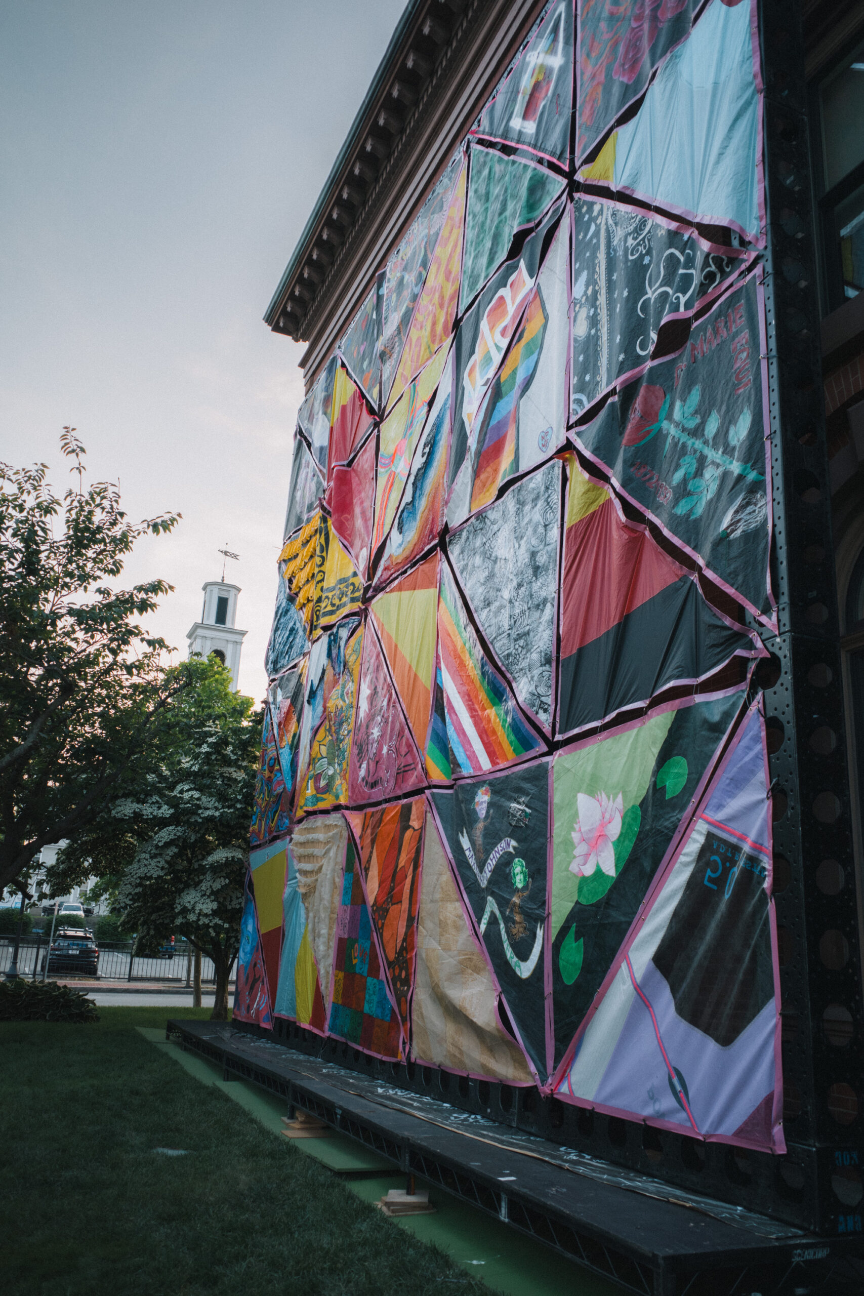Using upcycled textiles, the design was produced under the direction and mentoring of NY-based textile artist / LGBTQ+ activist Liz Collins who served the project as the Visiting Creative Director. This collectively-created, public art installation includes collaboration with the SouthCoast MA LGBTQ+ Network, the University of Massachusetts at Dartmouth College of Visual and Performing Arts (CVPA), and about 100 SouthCoast residents and organizations who have either donated materials or created a panel for the public art installation.